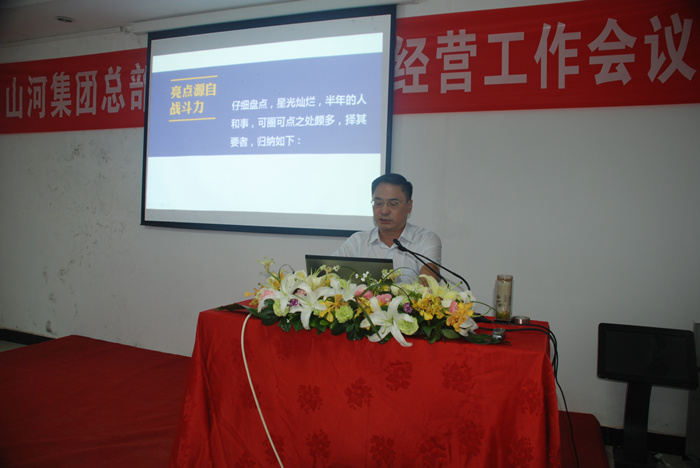 上午,会场采取传统的方式,主讲人在主席台上发言,与会者在台下落座。公司副总经理兼总工程师程秋明同志作了上半年技术、工程情况报告,综述了上半年在工程制度建设、科技创新、工程创优、技术服务、创鲁班奖、区域公司管理等方面取得的成果,并就下半年在技术服务与支持、方案审批及归档管理、工程技术培训、科技创新及技术攻关等方面作了详细计划。副总经理周游同志作了上半年经营工作报告,公布了上半年新签合约情况,从不同着眼点对经营情况进行了分析,点评了各区域公司的发展现状和成绩,下半年经营事业部将围绕加强流程管理、提高执行能力、市场开拓等方面开展工作。董事长助理姚伟同志作了上半年投资、地产板块工作报告,用销售收入、销售面积、销售回款、新增开工面积等多个指标数据分析了各个项目的完成情况,表明了项目开发过程中克服的困难、取得的成绩和需要吸取经验之处,并要求加强地产板块专业人员的培训,有序推进业务部门的实体化,通过竞争提高各方面的能力。人事行政总监张玉琼同志作了上半年战略企划、人力资源、行政工作报告,报告分为三部分,第一部分阐述了战略企划部在战略管理、品牌管理、企业文化建设、信息化管理等方面所取得的成果,第二部分阐述了人力资源部在优化组织管控、薪酬管理、绩效管理、招聘、培训等方面所取得的成绩,第三部分阐述了办公室在区域服务、商务接待、荣誉申报、后勤管理等方面所取得的成效。财务总监闵建华同志作了上半年财务工作报告,回顾了上半年财务资金管理、会计核算、融资管理、区域公司监管、财务税收管理等方面的工作。最后,湖北区域公司总经理林中茂同志作了典型发言。