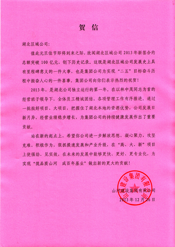 博鱼网页登陆_博鱼(中国)公司特向湖北区域公司发来贺信表示祝贺,并期待湖北区域公司为实现“筑品质博鱼网页登陆_博鱼(中国) 成百年基业”的企业愿景做出新的更大的贡献!
