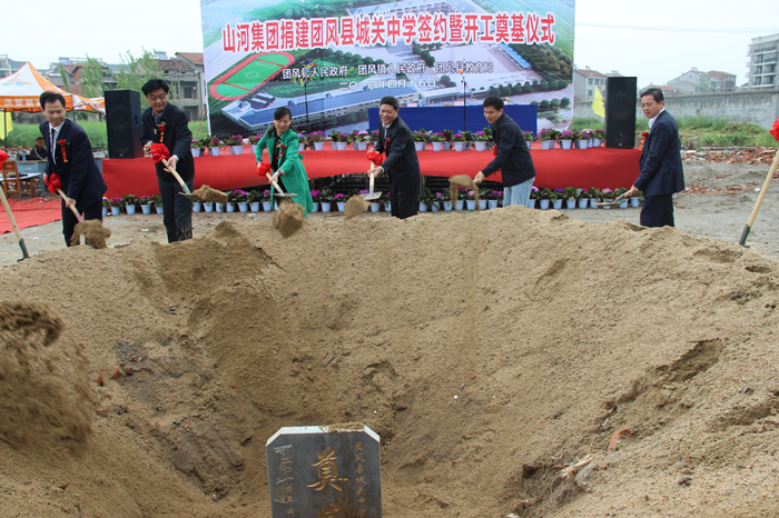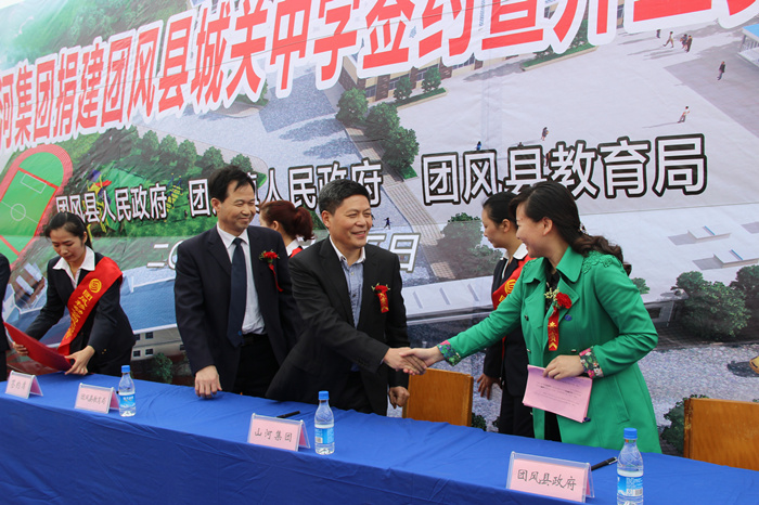 4月15日上午,博鱼网页登陆_博鱼(中国)博鱼网页登陆_博鱼(中国)捐建团风县城关中学签约暨奠基开工仪式举行,团风县副县长黄菊花代表县人民政府与博鱼网页登陆_博鱼(中国)博鱼网页登陆_博鱼(中国)董事长程理财签订了捐建协议书。