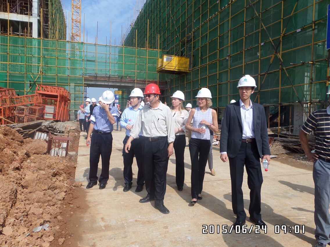 6月24日上午,武汉光谷国际生物医药企业加速器2.1期项目迎来最高规模的检查。美国通用博鱼网页登陆_博鱼(中国)和德国美施威尔领导莅临现场视察,对项目的工程质量、安全施工要求、夏季施工程序、工程监理等细节进行了严格细致的查看。