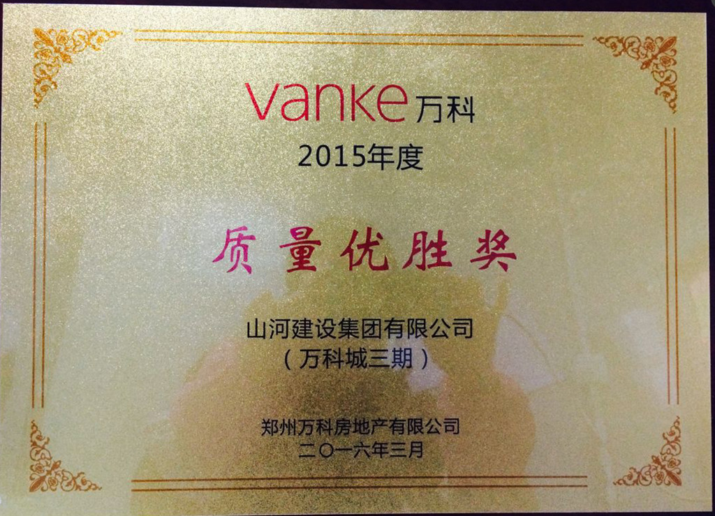 3月10日,郑州万科房地产有限公司举办了“2016合作方目标与行动沟通会暨颁奖典礼”,与郑州万科合作的各家单位均有代表参加会议。博鱼网页登陆_博鱼(中国)博鱼网页登陆_博鱼(中国)凭借过硬的质量品质,承建的万科城三期项目荣获郑州万科颁发的“质量优胜奖”。