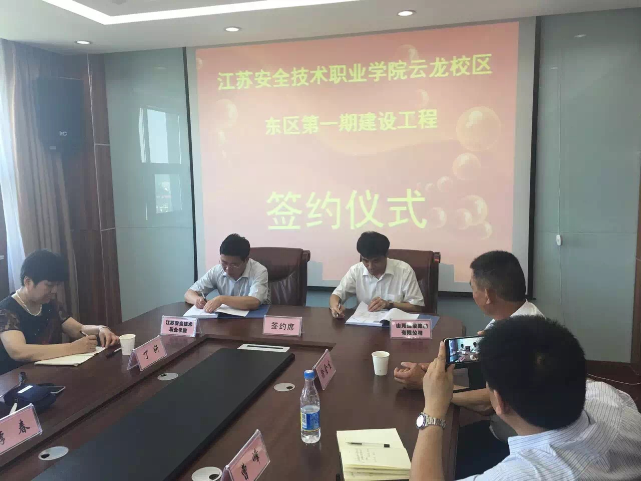 据悉,江苏安全技术职业学院是江苏省安全生产监督管理局直属事业单位,是一所刚从中专升为大专的院校。此次签约的云龙校区东区第一期建设工程,项目位于徐州市云龙区,总建筑面积约3万平米,由一栋12层框剪学生宿舍和一栋5层框架综合楼组成,总投资约8000万元,是徐州市指定的重点工程项目。