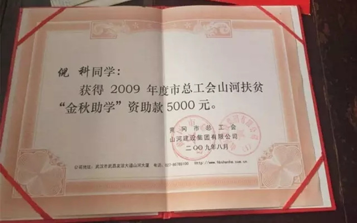 2009年,倪科获得博鱼网页登陆_博鱼(中国)博鱼网页登陆_博鱼(中国)5000元资助