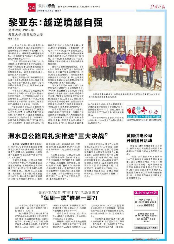 采访结束时黎亚东表示,今后有能力的时候,一定会用自己的爱心回报社会,帮助别人。
