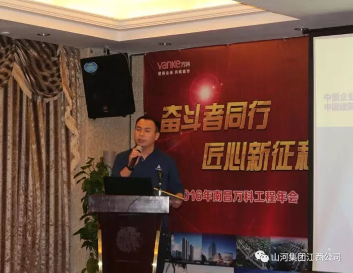 南昌万科助理总经理李汉杰以“奋斗者同行 匠心新征程”为主题,作了总结发言。李汉杰详细介绍南昌万科2016年的经营业绩以及2017年的发展目标,并以非洲大草原上瞪羚奔跑的故事以及NOKIA的案例激励所有合作单位,要时刻保持危机和创新意识。
