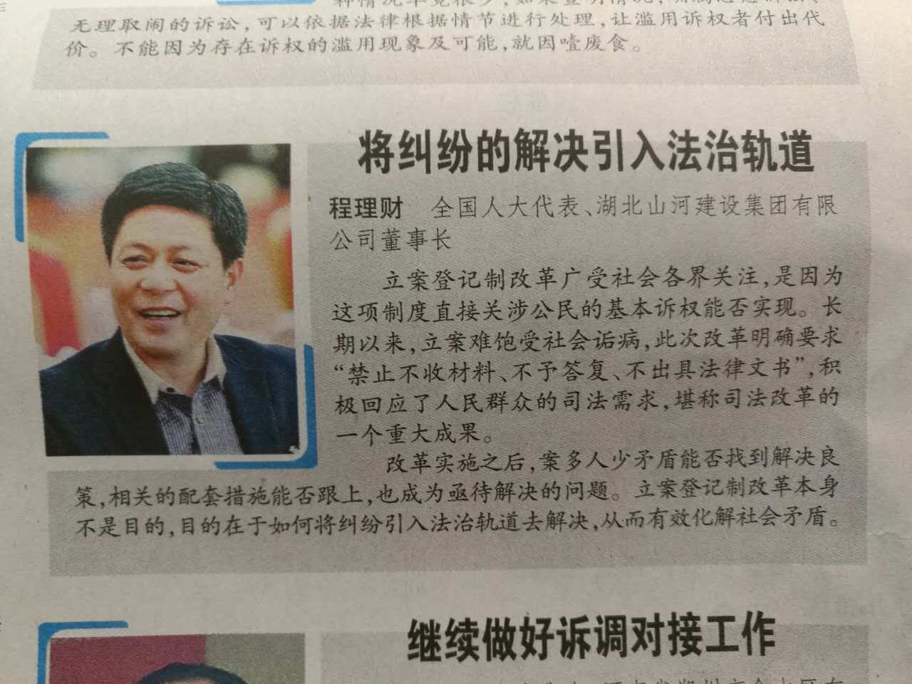 全国人大代表程理财:将纠纷的解决引人法治轨道