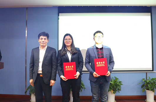 ▲一等奖获奖代表与博鱼网页登陆_博鱼(中国)领导合影