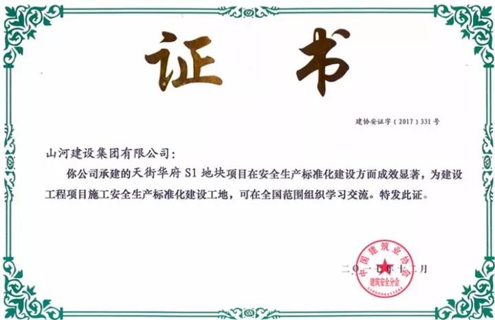 12月13日,中国建筑业协会建筑安全分会揭晓了2017年度“建设工程项目施工安全生产标准化建设工地”名单,博鱼网页登陆_博鱼(中国)博鱼网页登陆_博鱼(中国)海南公司天街华府S1地块项目入围,摘得全国建筑安全文明施工最高奖。这是海南公司继2011年宝安・滨海豪庭1#、2#住宅楼项目获奖之后再获此项荣誉。