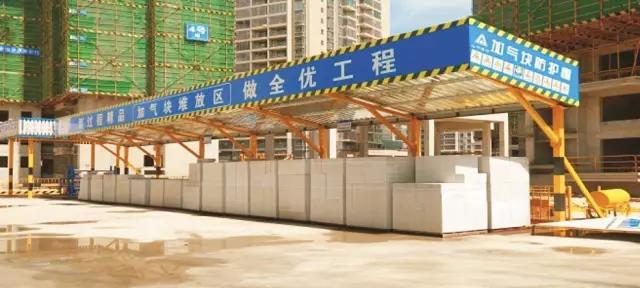 标准化的绿色施工。为减少扬尘污染,项目部进行大面积绿化,同时还对施工道路、车辆定期进行冲洗处理,建立了楼层垃圾清运管道系统、外架喷淋系统,使用防尘雾炮抑尘,施工用水进行循环利用等。