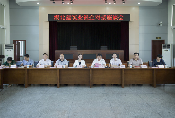 为切实帮助湖北省民营建筑企业缓解“融资难”问题, 7月11日上午,湖北省住建厅和省政府金融办召开湖北建筑业银企对接座谈会。中国工商银行、中国农业银行、中国银行、中国建设银行、中国交通银行等全省11家金融机构的副行长和省内12家民营建筑企业董事长及财务分管领导参会。湖北省住建厅党组副书记、副厅长张弘,省金融办副主任严宓,省建管局党委书记、局长李晶杰等出席会议。