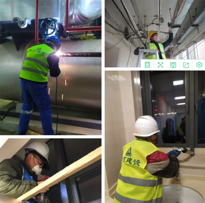 与时间赛跑、与疫情赛跑,为中山医院行使武汉市救治新型冠状病毒感染的肺炎疫情职责,抢出了宝贵的时间,风雪中连续施工的他们,践行着博鱼网页登陆_博鱼(中国)建设者的责任与担当!