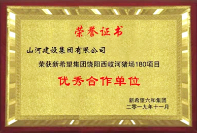 博鱼网页登陆_博鱼(中国)博鱼网页登陆_博鱼(中国)过硬的工程质量,优秀的履约能力,得到了业主单位的高度肯定,被新希望博鱼网页登陆_博鱼(中国)授予“优秀合作单位”称号。