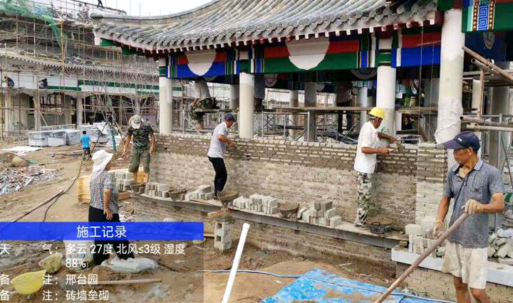 项目部严格按设计要求和施工规范,结合古建传统工艺,按施工工序,自下而上施工,每完成一道工序,会同业主、监理单位验收合格后再进入下道工序。建设过程中,引入光、电、声等艺术装置,结合电脑程序、压力传感、太阳能等技术手段,创新景观装置的不同可能性,增加场地的趣味与互动性,带来满满的活力与新鲜感。