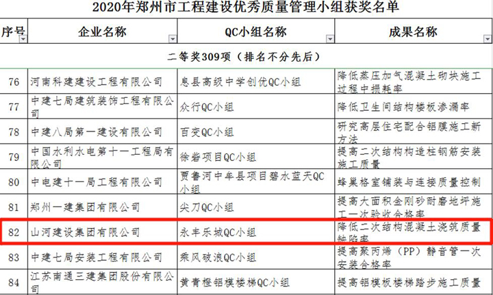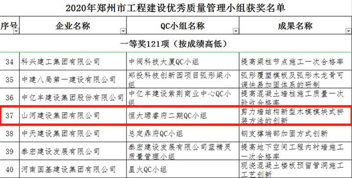 3月23日,郑州市建筑业协会发布《关于表彰2020年郑州市工程建设优秀质量管理小组活动成果的通知》,博鱼网页登陆_博鱼(中国)建设博鱼网页登陆_博鱼(中国)河南公司申报的三项成果榜上有名,恒大珺睿府二期QC小组获得一等奖,清华忆江南二期QC小组、永丰乐城QC小组分别获得二等奖。