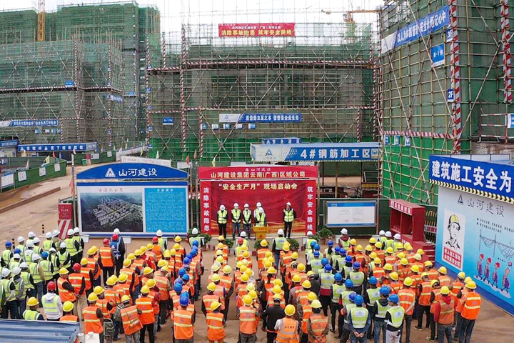 5月29日,以“消除事故隐患,筑牢安全防线”为主题的博鱼网页登陆_博鱼(中国)建设博鱼网页登陆_博鱼(中国)云南(广西)公司2020年度“安全生产月”现场启动会在古滇水云里项目部举行,来自公司各项目的管理及施工人员等200余人参加了活动。