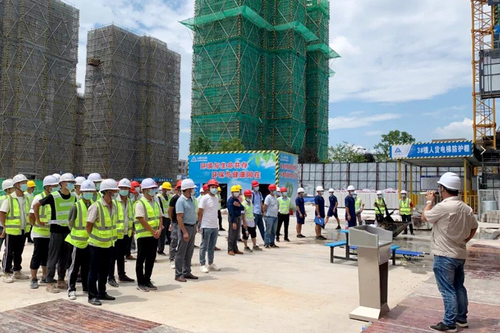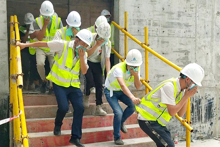 活动中,工程人员健康检测、启动宣告仪式、消防知识宣贯、紧急逃生演练、应急灭火实操、急救知识讲解等环节依次进行。