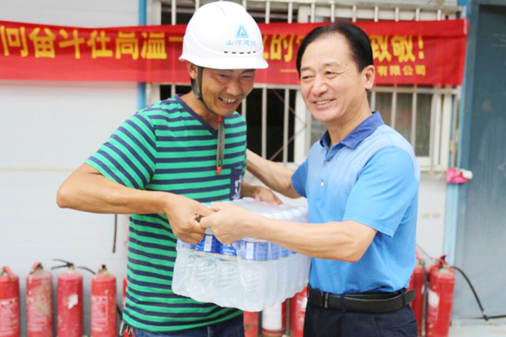 河南公司副总经理詹成义、党支部书记孙楚春代表公司经营班子,带队前往各项目部,为大家送去冷饮、绿豆、防暑必备药品等,并带去了公司的问候,嘱咐一线员工在夏季施工过程中注意防暑,确保身体健康,牢记安全生产。