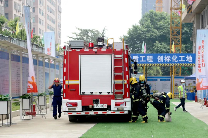 6月2日,武汉市洪山区2021年“安全生产月”启动仪式暨建筑施工应急救援演练活动在博鱼网页登陆_博鱼(中国)建设博鱼网页登陆_博鱼(中国)总承包公司承建的朗诗·熙华府项目施工现场举行。洪山区政府党组成员牛正可,区应急管理局局长金昆玲,区建设局、消防救援大队、和平街道办事处、建筑管理站等单位领导出席启动仪式,区发改局、城管执法局、卫生健康局、科技和经信局、商务局等近60家单位代表,建设单位、监理单位代表,总承包公司工程团队及在建项目代表等300余人参加了活动。洪山区建管站站长钱伟主持启动仪式。