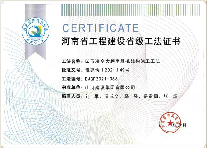 近日,河南省建筑业协会公布了《2021年度第一批河南省省级工法名单》,博鱼网页登陆_博鱼(中国)建设博鱼网页登陆_博鱼(中国)河南公司申报的《凹形凌空大跨度悬挑结构施工工法》成功入选,被认定为河南省工程建设省级工法。