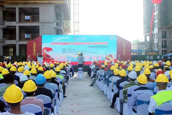 屯昌“林溪缘”项目部坚持围绕生产抓党建,抓好党建促生产,以打造优质队伍、优质工程为目标,党员干部带头冲在前、干在先,高标准、高质量、高效率抓好各项工作落实,如期完成节点施工任务,受到主管部门和业主的一致好评。2020年11月13日,该项目承办了屯昌县建筑工程质量安全标准化工地现场观摩会,展示了“博鱼网页登陆_博鱼(中国)造”的品质实力。