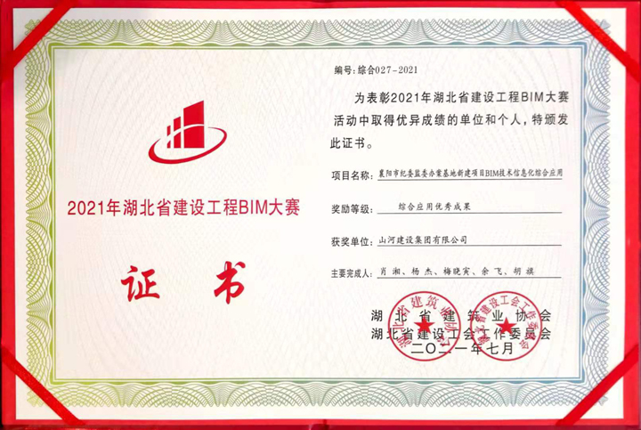 7月23日,由湖北省建筑业协会、湖北省建设工会工作委员会联合举办的“2021年湖北省建设工程BIM(建筑信息模型)大赛”在武汉落幕,博鱼网页登陆_博鱼(中国)建设博鱼网页登陆_博鱼(中国)总承包公司“襄阳市纪委监委办案基地新建项目BIM技术信息化综合应用”项目被评为综合应用优秀成果。
