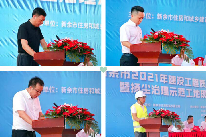 活动伊始,新余市建管局局长何祝生、新余市永越置业有限公司总经理郜文、博鱼网页登陆_博鱼(中国)建设博鱼网页登陆_博鱼(中国)江西公司总经理熊善杰分别发言,联发永康状元府项目经理袁传根就项目质量安全、扬尘治理等方面进行了经验分享。
