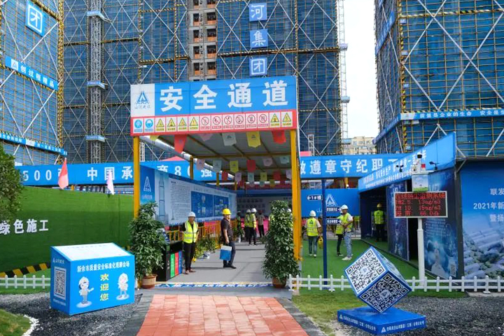 随后,与会代表前往安全体验区、工法样板区、主体楼栋、实测实量展示区、安全管理展示区、施工机具展示区进行参观,对施工现场的安全文明标准化建设、基坑防护栏、喷淋降尘系统等措施给予了充分肯定。