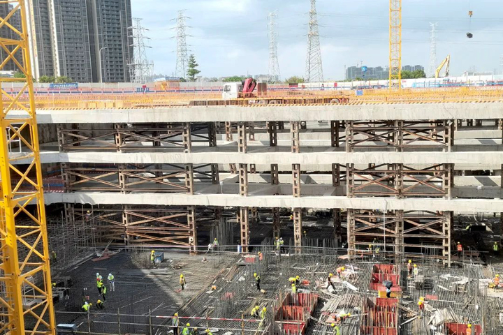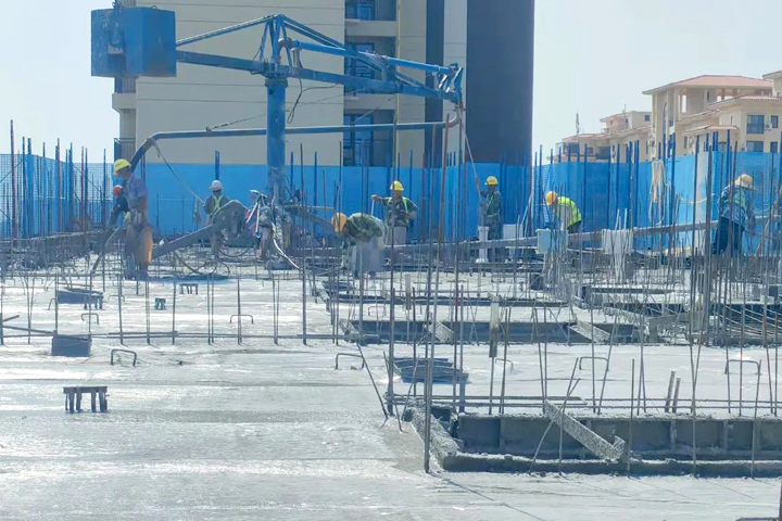 ▲东方碧桂园东方之珠项目二期工人在浇筑混凝土