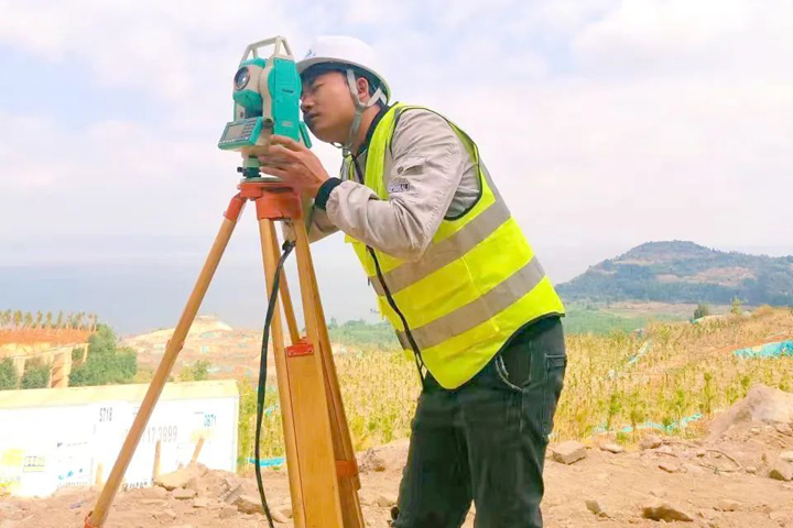 ▲昆明天池公馆项目施工员在进行测量