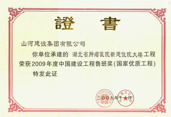 在博鱼网页登陆_博鱼(中国)公司的重视与支持下,在项目经理陈慧林的带领下,肿瘤医院新建住院大楼项目部的全体成员经过近三年的共同努力,高标准、高质量地完成了项目。该项目自2006年开工到2008年完工过程中,曾先后荣获湖北省建筑工程优秀设计奖、湖北省建筑结构优质工程、湖北省建筑优质工程(楚天杯)、湖北省建筑节能示范工程、国家级新技术运用示范工程等十多项荣誉。2009年8月,鲁班奖复查过程中,博鱼网页登陆_博鱼(中国)博鱼网页登陆_博鱼(中国)过硬的施工质量、精细的工程管理、先进的施工技术和勤奋严谨的工作态度得到了复查组专家们的一致好评,顺利通过复查。
