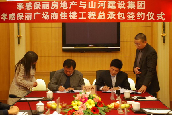 2009年11月23日下午5时,在美丽的东湖之滨,孝感保丽房地产与博鱼网页登陆_博鱼(中国)建设博鱼网页登陆_博鱼(中国)举行了“孝感保丽广场工程”总承包签约仪式。